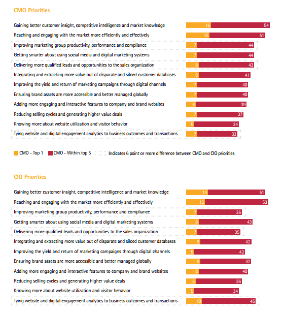In particolare questo report si concentra sull’integrazione di due ruoli che come abbiamo visto anche in passato (qui l’articolo che riprende la conversazione a due tra Esteban Kolsky e Ray Wang dello scorso Giugno) risultano essere fondamentali nelle organizzazioni di oggi: il Chief Marketing Officer e il Chief Information Officer.