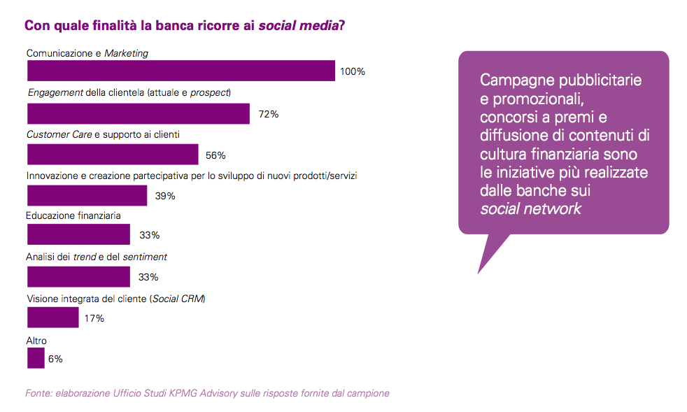 - Entrando poi più nel vivo dell’analisi emergono dati interessanti. E’ l’80% delle banche intervistate a ritenere i social media importanti per la comunicazione con i propri clienti.