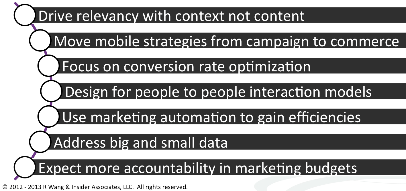 Nello specifico Ray Wang ( http://blog.softwareinsider.org/2013/03/06/trends-seven-priorities-in-the-shift-from-cmo-to-chief-digital-officer/ ) identifica anche 7 azioni e 7 priorità specifiche nell’evoluzione verso questo modello.